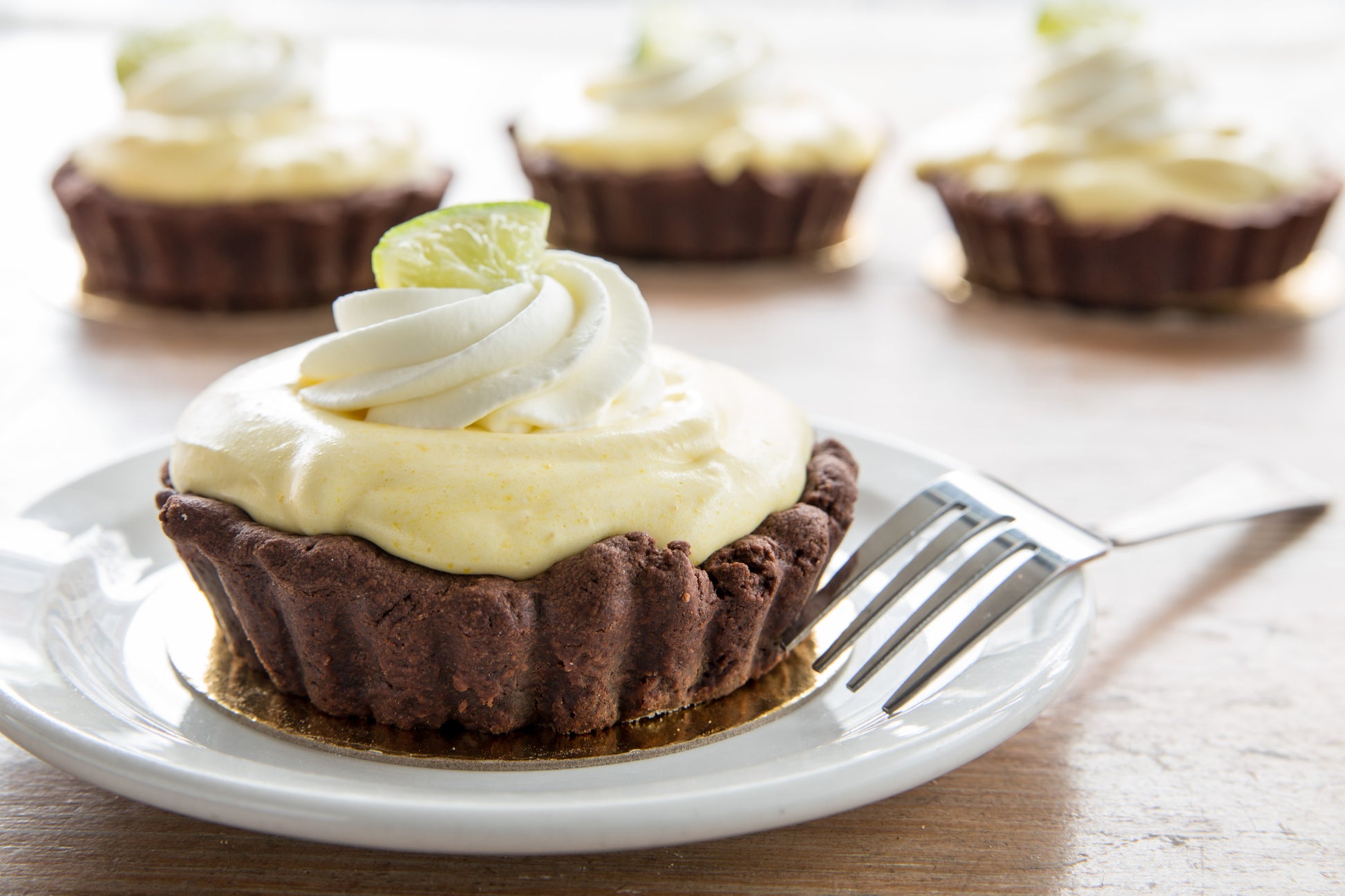 A bright twist on a classic, this lighter version features silky white chocolate mousse folded with tangy lime curd and a splash of fresh lime juice. It’s piled high into your choice of a buttery shortbread crust or a rich chocolate shortbread base. Finished with whipped cream rosettes and fresh lime slices, it’s zesty, light, and refreshingly indulgent.